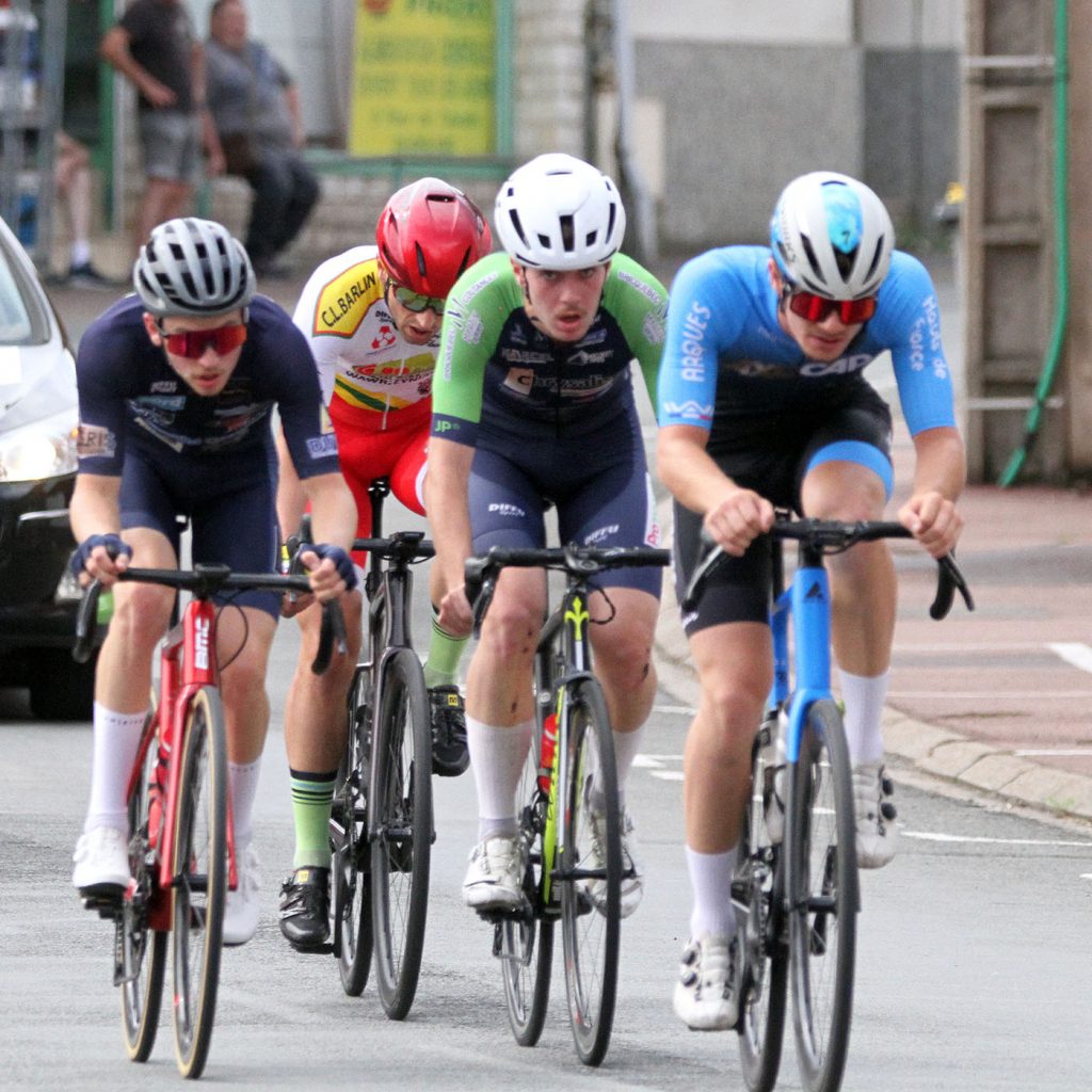 Après les escarmouches de début de course, quatre hommes se portaient en tête : Jan Loviny (Arques), Tristan Waroux (Bricquebec -Coutances), Pierre-Matys Huber (Flandre élite cyclisme) et Corentin Torzewski (Barlin). Rapidement, ils portaient leur avance à 45 s mais le peloton bouchait l’écart assez rapidement en dépit d’une belle résistance de Waroux qui tentait de repartir seul.